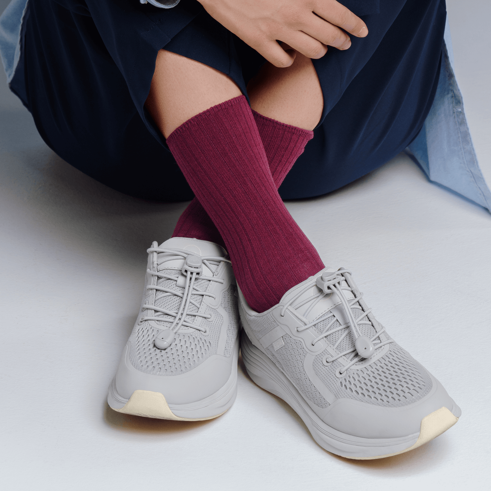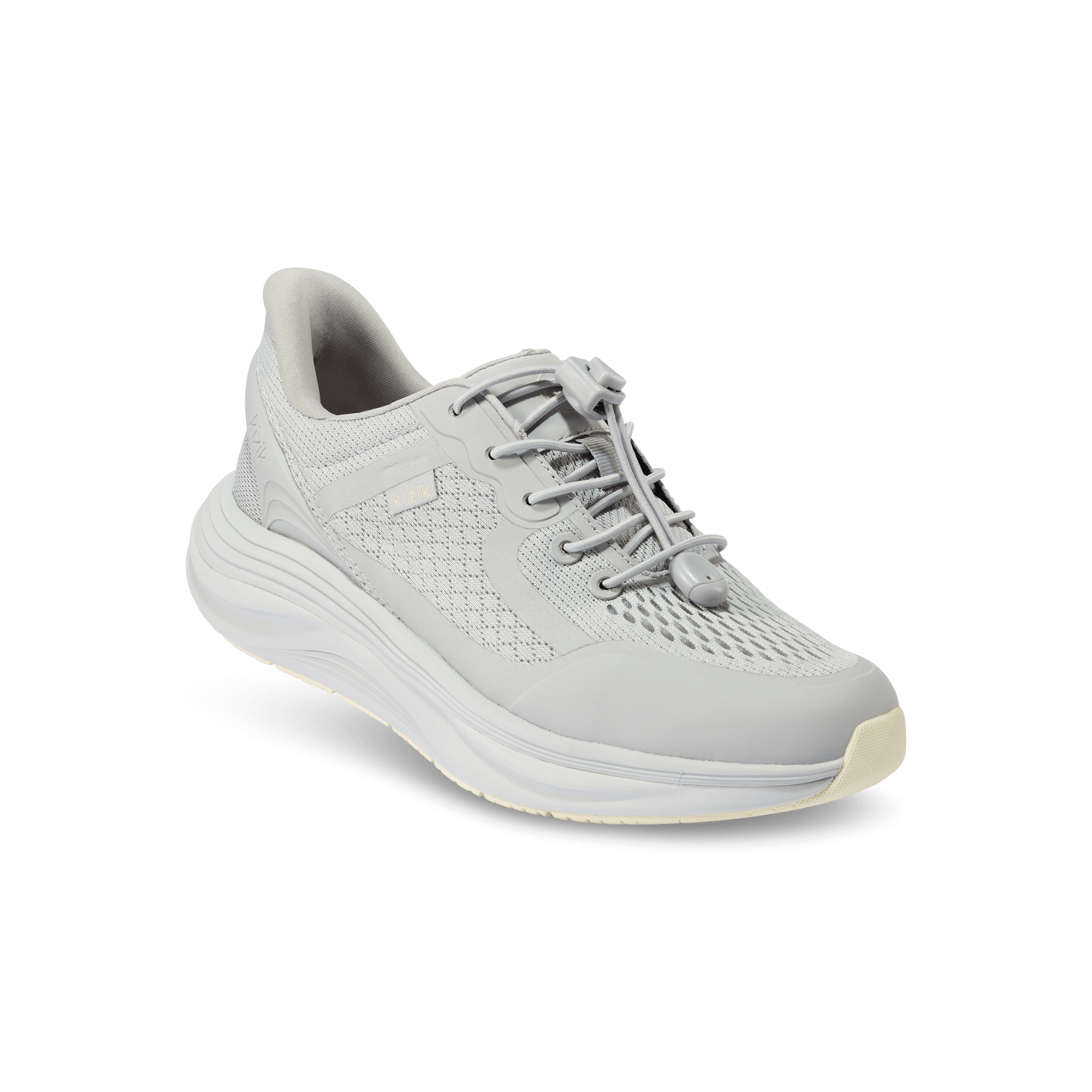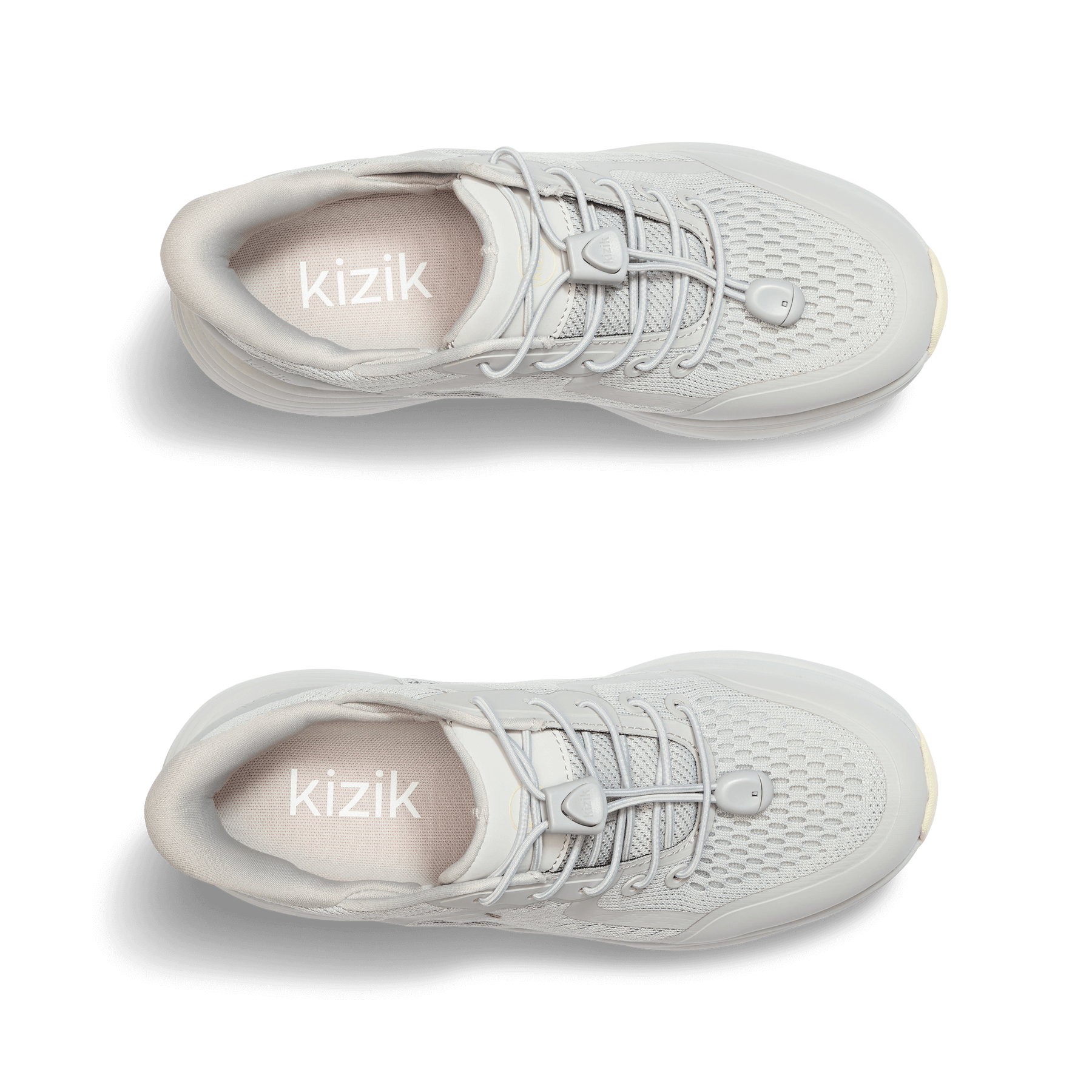 レースロックをつまむだけで、靴ひもの締め具合を調整できます。ボタンを離すと、靴ひもが固定します。